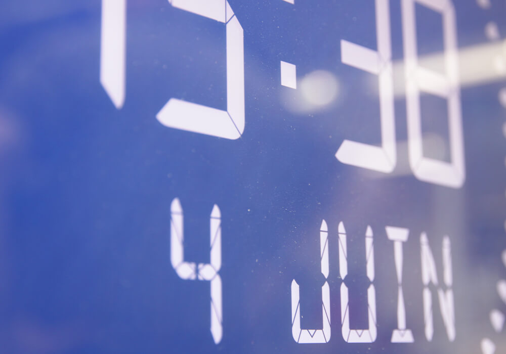 LCD-Uhr mit besonders weitem Ablesewinkel und hervorragendem Kontrast dank blauer Hintergrundbeleuchtung. Mehrere Modelle erhältlich: Opalys 7, Opalys 14, Opalys Ellipse und Opalys Date.