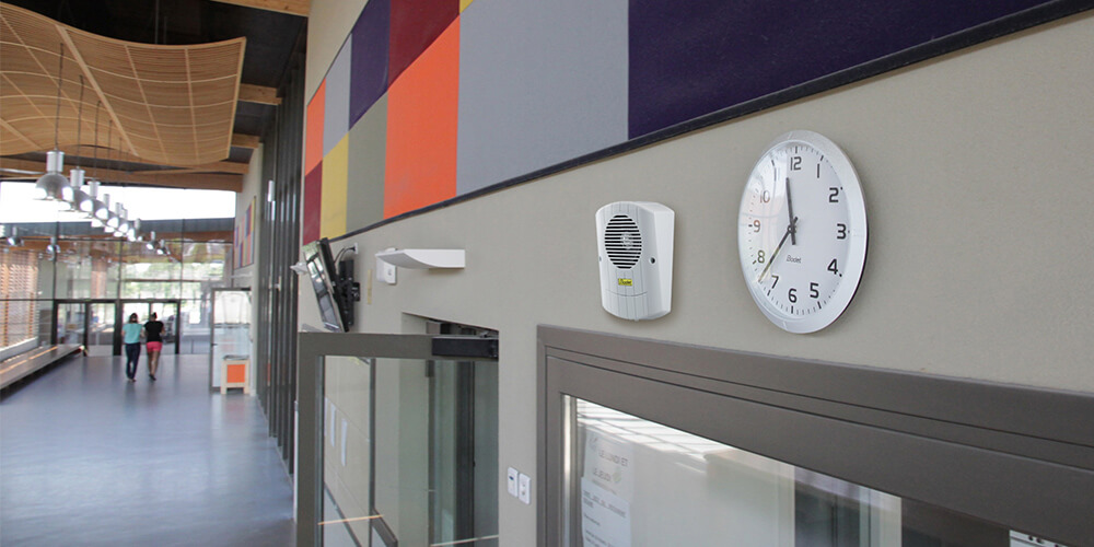 Pensados para sustituir a los antiguos sistemas de sonerías estridentes y obsoletos, los carillones Melodys garantizan la difusión de melodías y mensajes pregrabados en centros educativos, plataformas logísticas y fábricas. La gama Melodys está compuesta por carillones inalámbricos interiores y exteriores, controlados por un reloj patrón (tecnología DHF).