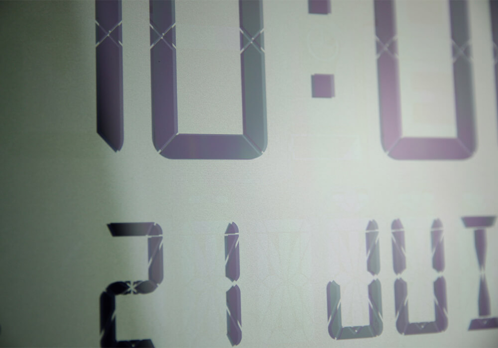 LCD reflective display with very large viewing angle and perfect contrast. Four models: Cristalys 7, Cristalys 14, Cristalys Ellipse and Cristalys Date.